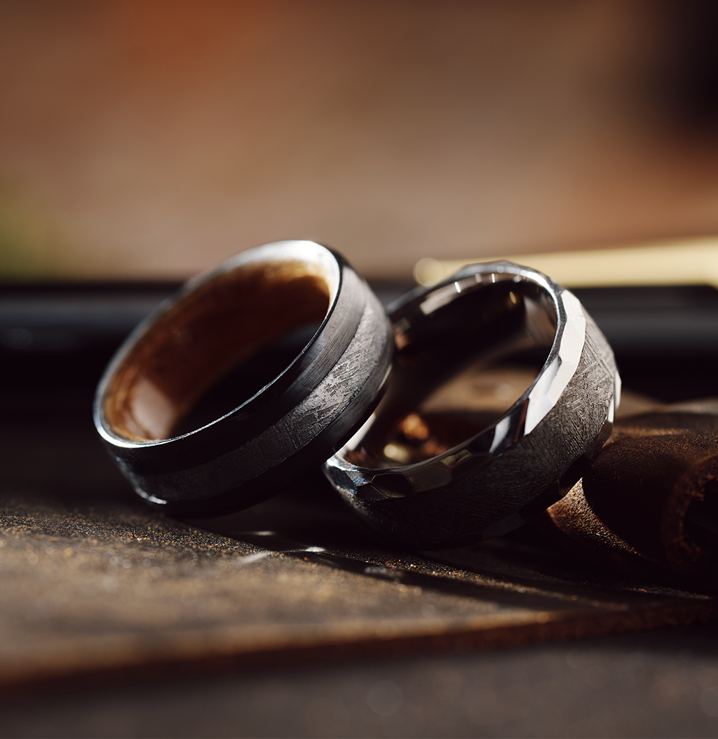 And for those who like to live in the fast lane, we've got Damascus steel and carbon fiber. These aren't your grandpa's wedding rings. They're for the modern man.