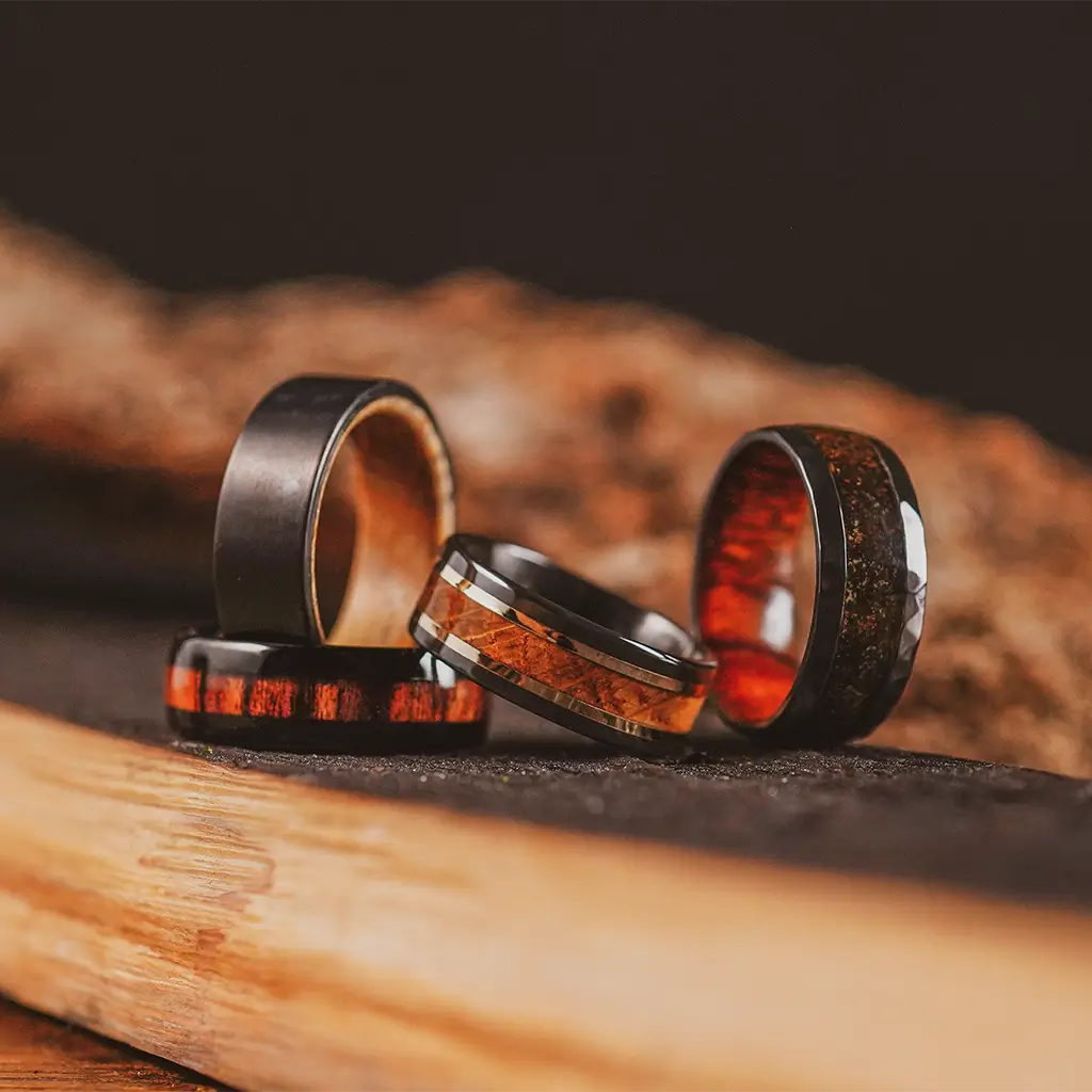 The strength and character of our rings come from the materials we use. Each has its own story and symbolism, like a secret handshake for those in the know.