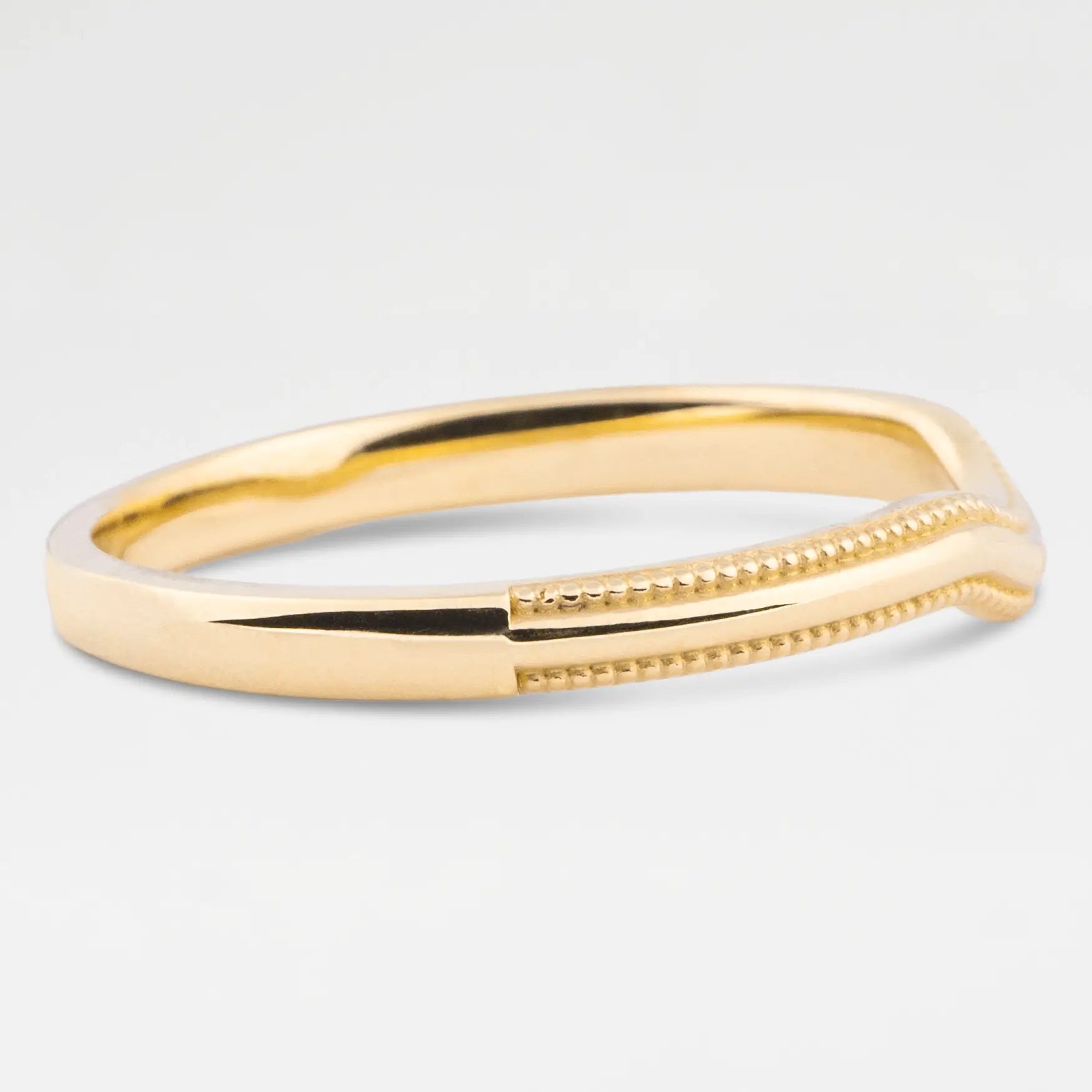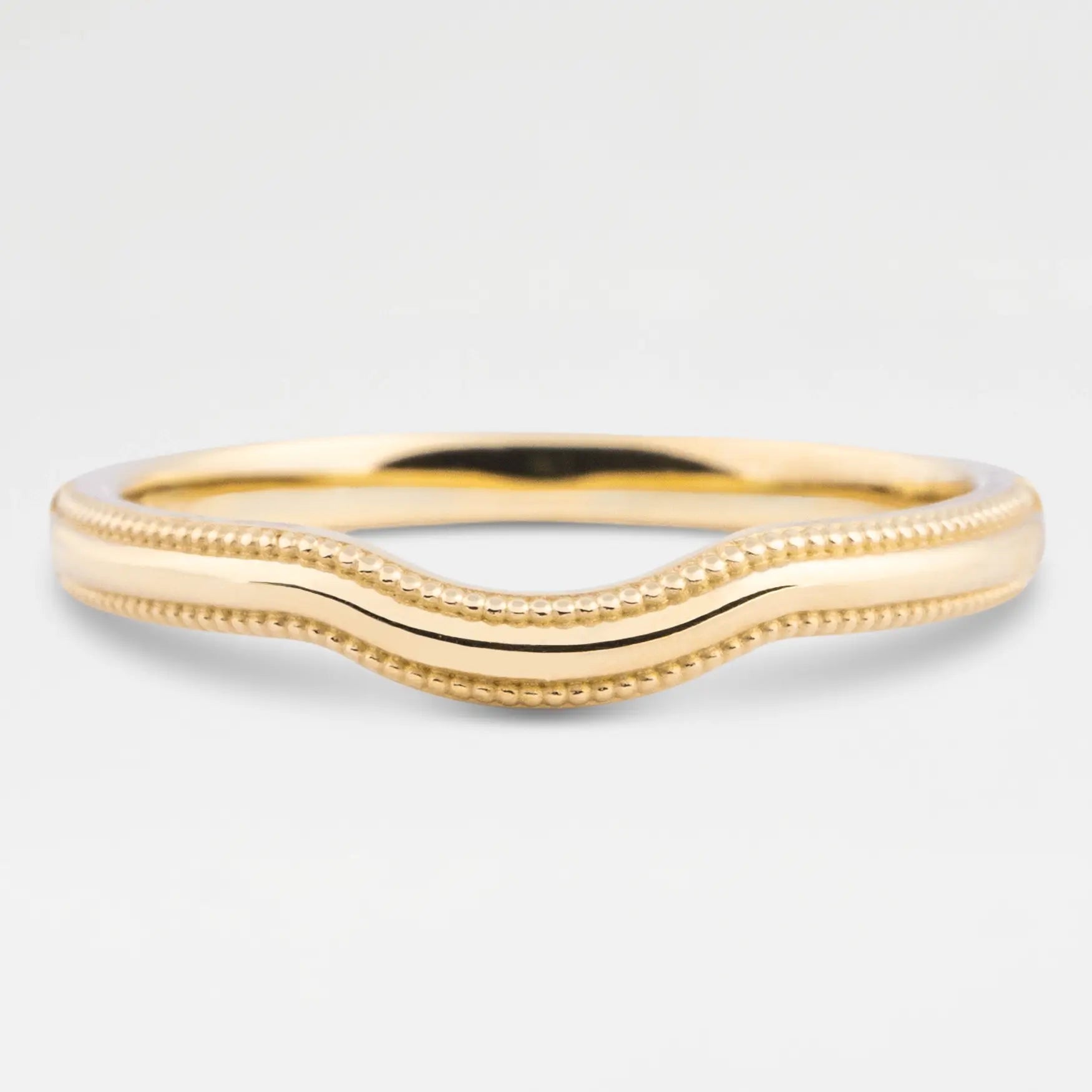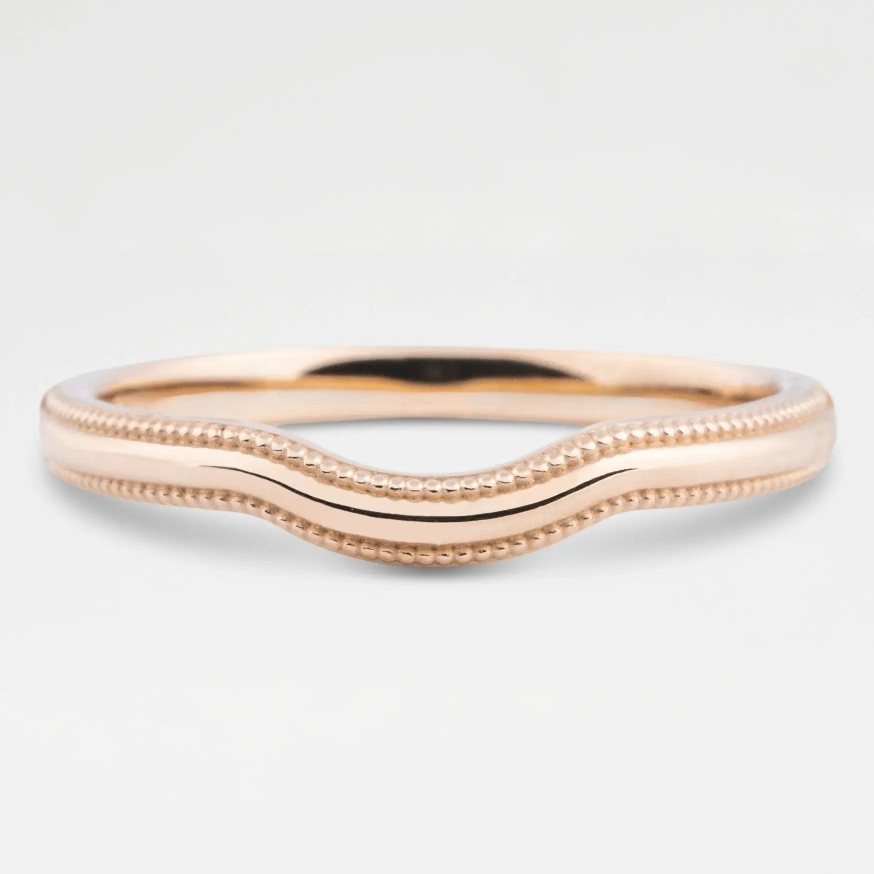 I spent weeks trying to find a simple wedding band that would hug my diamond on my engagement ring. The issue: my engagement ring is rose gold and I could NOT find anything I liked, until I found this ring. It fits comfortably. The color is perfect. It has enough of a curve to hug a stone on another band and sit flush. It has enough detailing to elevate it above a typical Plain Jane band. The width is perfect and does not feel bulky on my finger. It feels like a timeless band and is so complementary to my engagement ring. I cannot love this band enough!!
