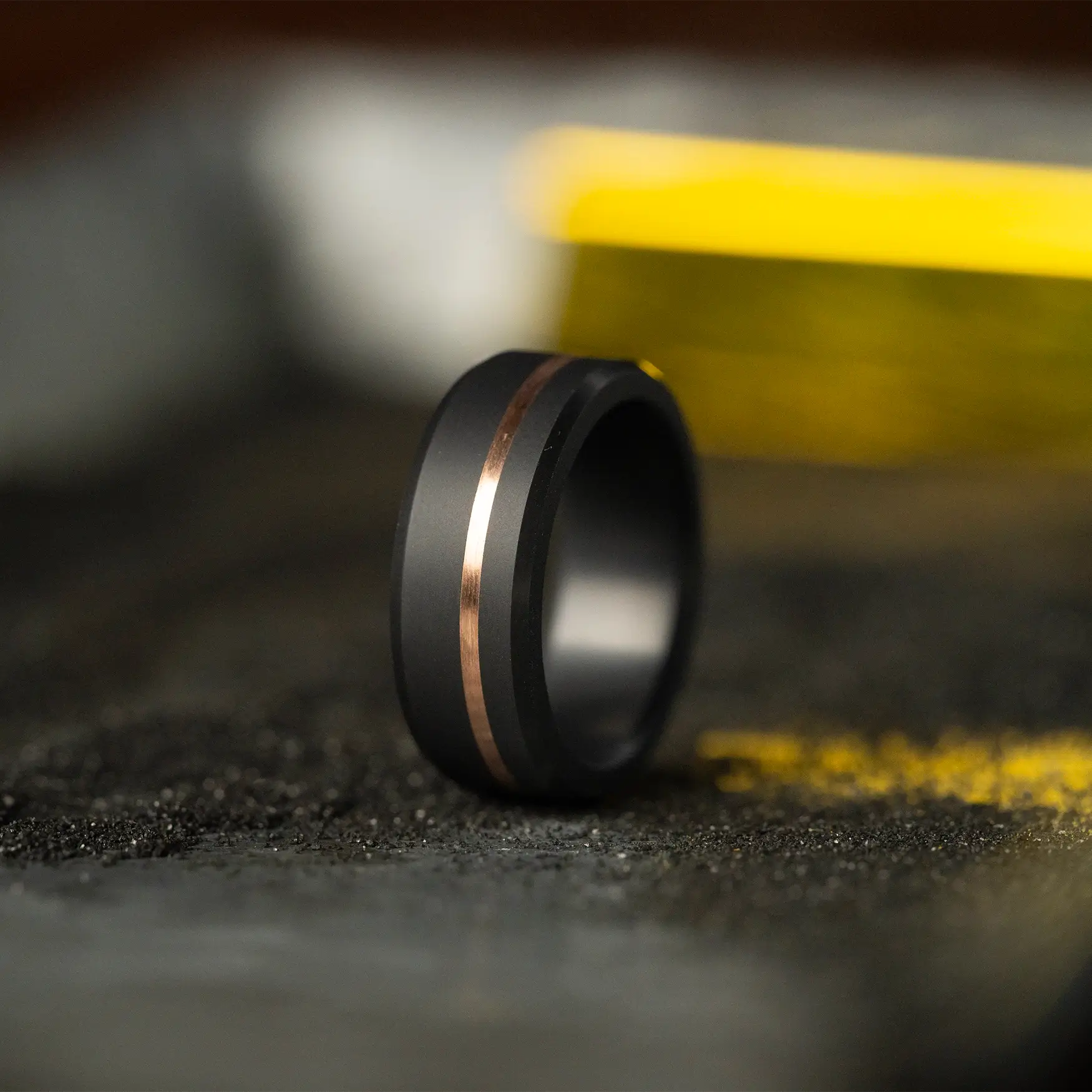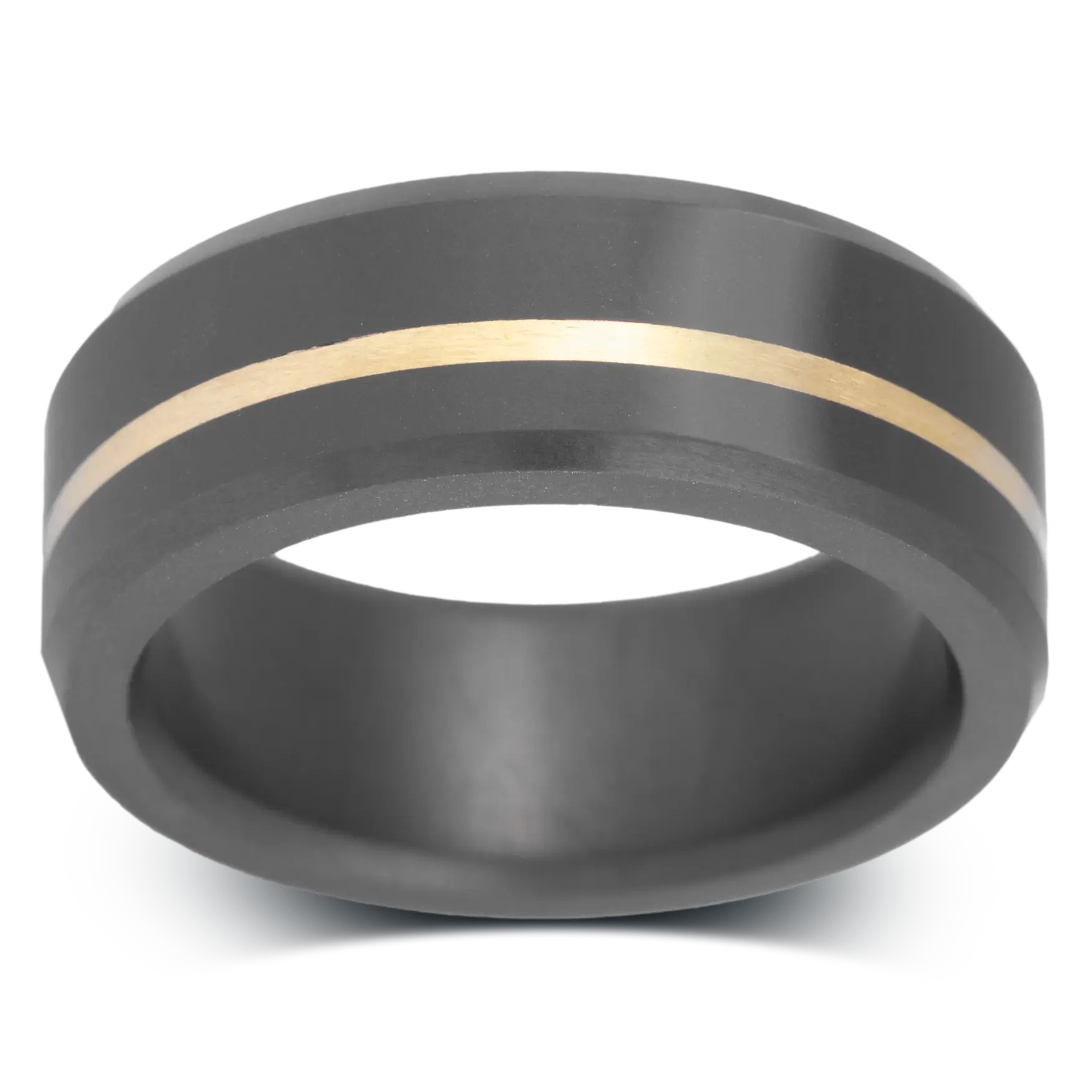 - Pressed Black Diamond (charcoal gray color) with 1mm Offset Solid 24K Yellow Gold, 10K Rose Gold or Platinum Inlay