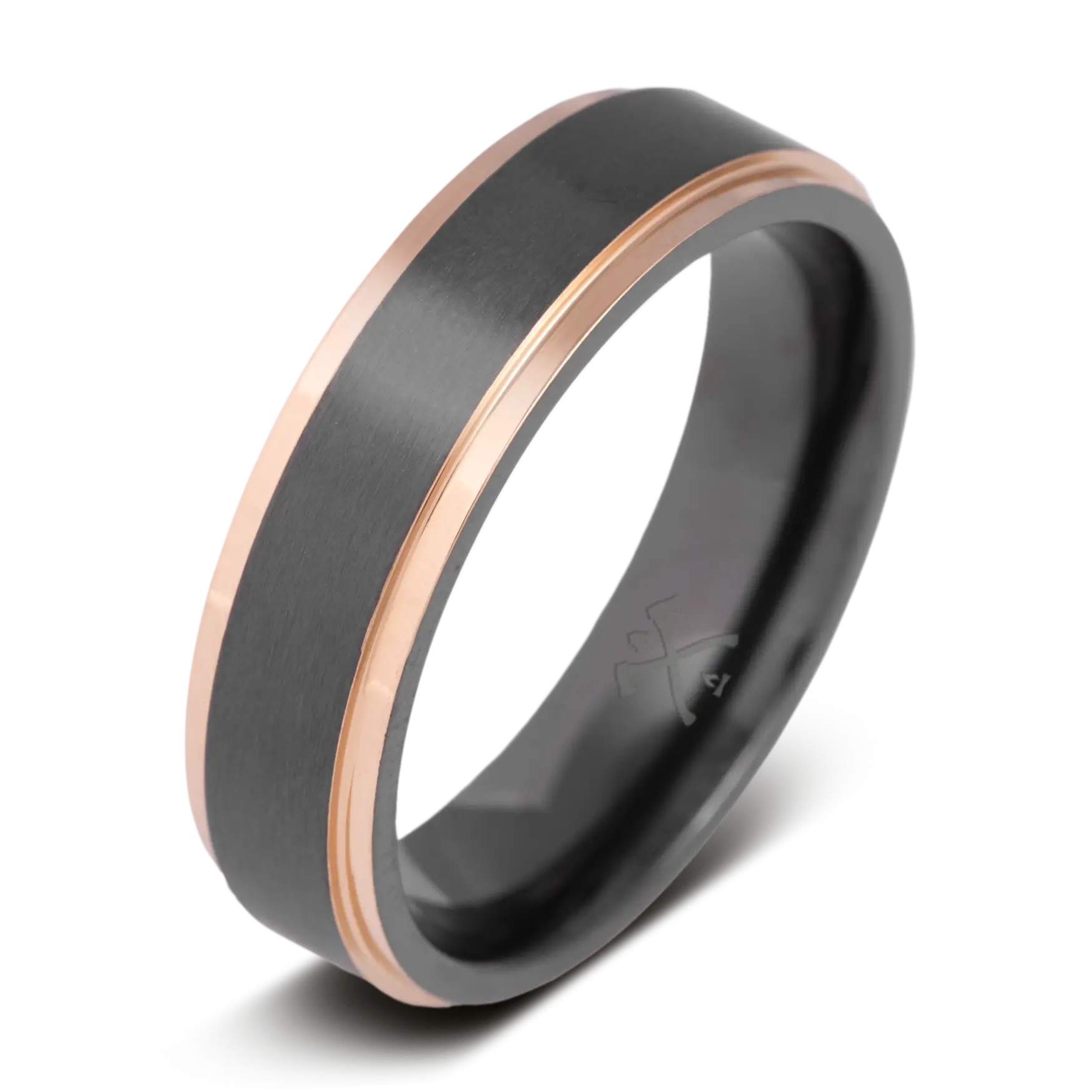 • Black Zirconium (charcoal gray color) with 14K Rose Gold Plated Sides