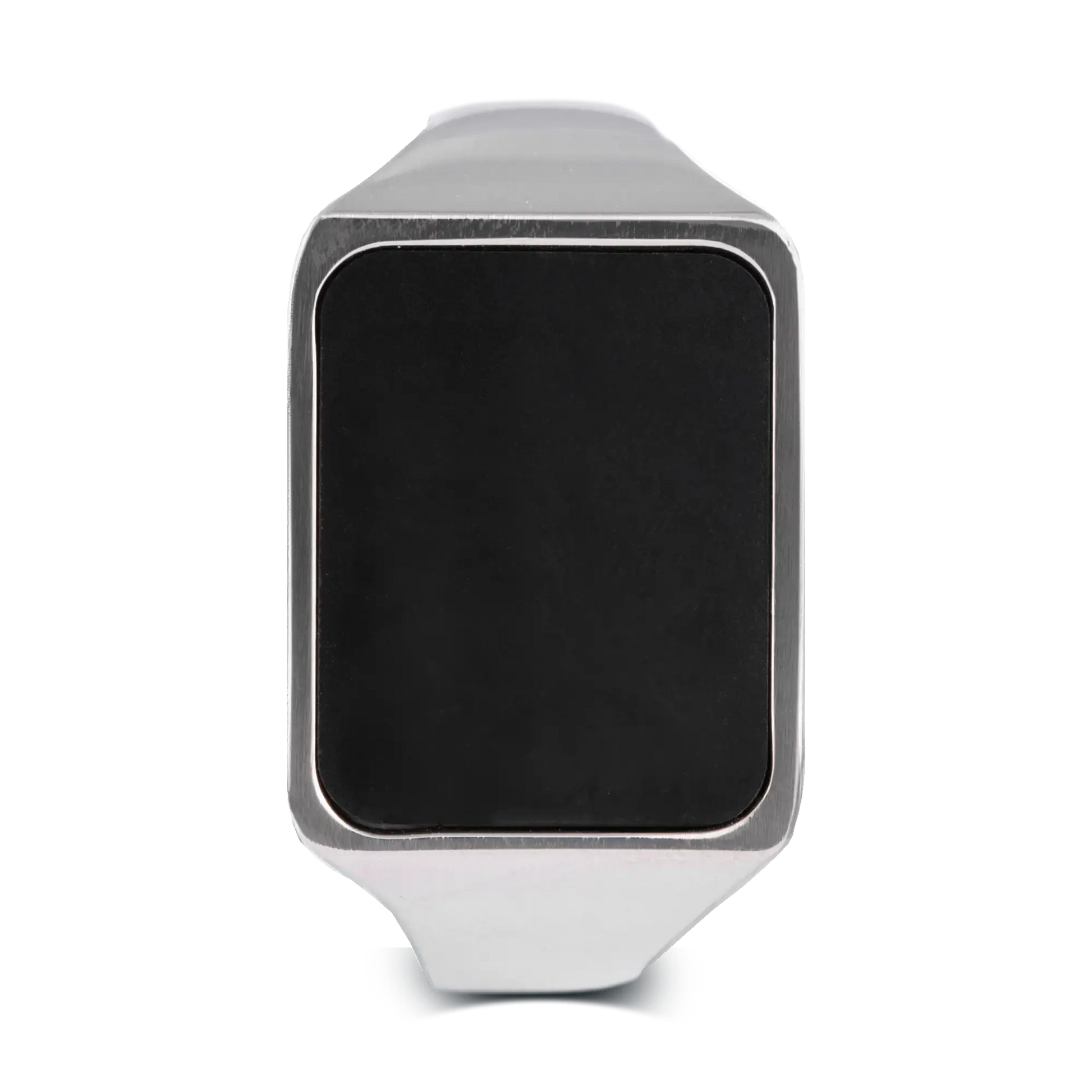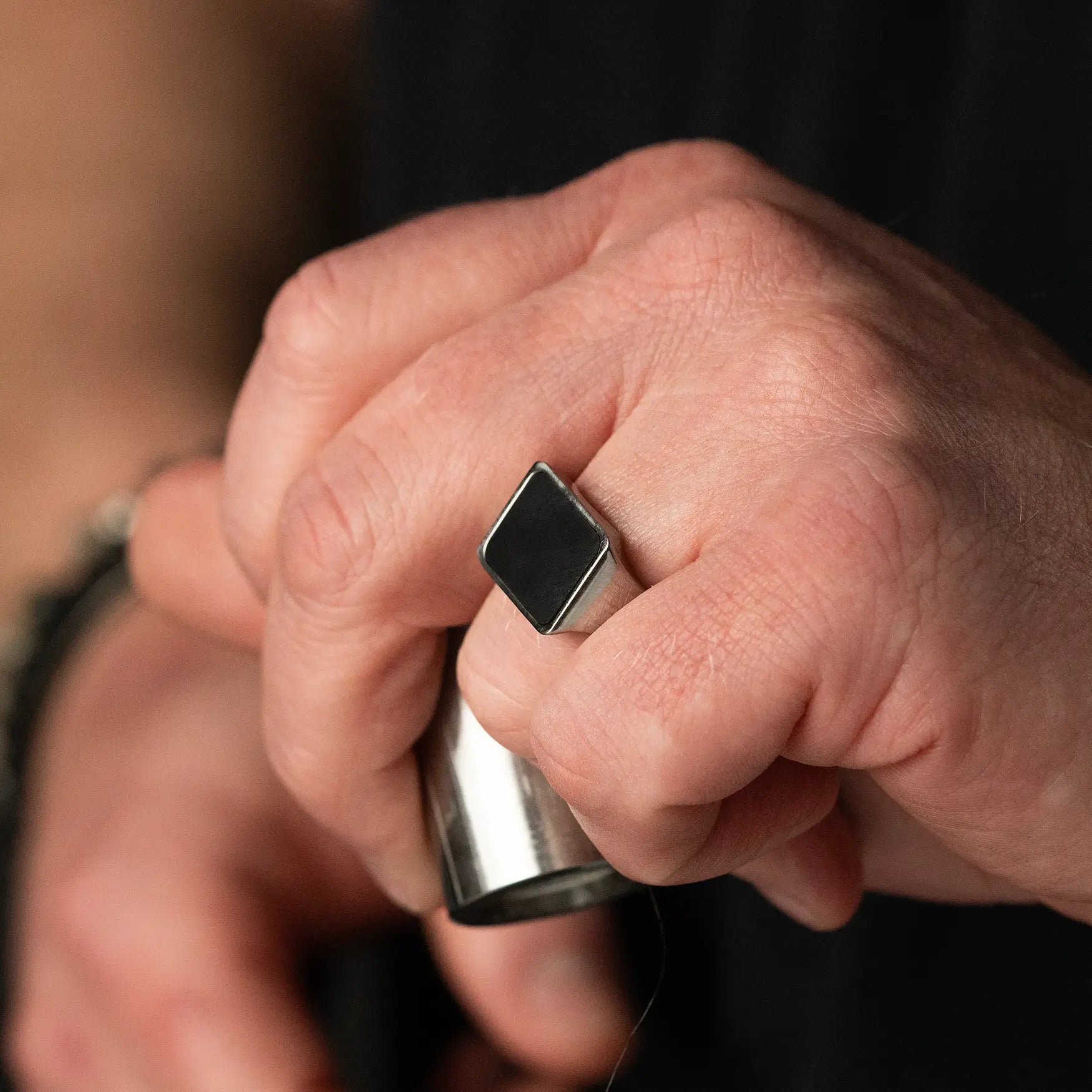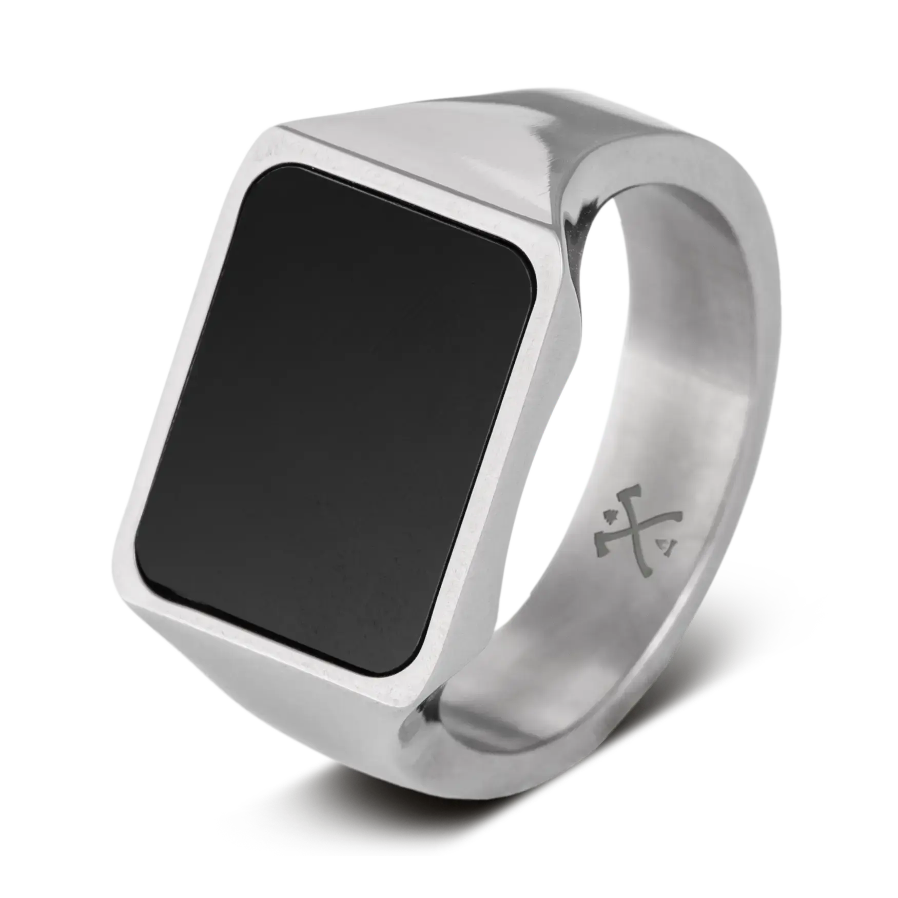 - Titanium with Solid Pressed Black Diamond (charcoal gray color) Signet