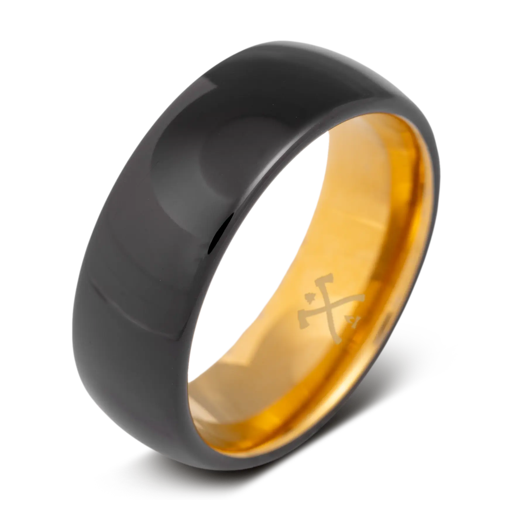 I purchased a separate band for my husband from another company. After one week, he was complaining about moisture building up under his ring, causing discomfort from the chaffing. I researched and found Manly Bands; and the Record Producer was the perfect blend of function, style and comfort. He LOVES gold, and wears gold rings on his other fingers- wanting a Black comfortable band was a hard find particularly online. He loves the way the ring feels on his hand, loves how moisture cannot settle, and specifically the 14k gold inner ring that faces his skin.